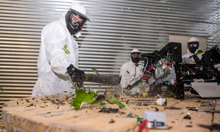 We are committed to responsible handling of all waste, recyclable materials, and discarded equipment.All destroyed objects, debris, and materials are sorted carefully after each session. We partner exclusively with certified recycling handlers and licensed waste management facilities to ensure that electronics, metals, plastics, and other materials are properly recycled or disposed of according to environmental and industry standards..